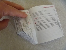 1° opération : couper le « prions » pour le rendre rectangulaire (comme un livre de poche) et pas carré : on coupe environ 2 à  3 cm sur toute la hauteur